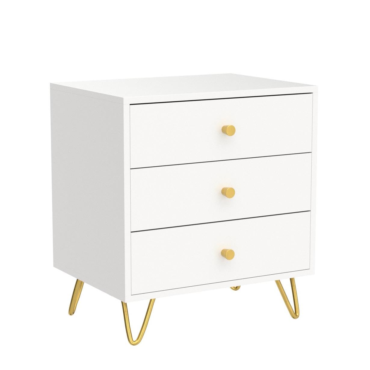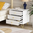 - This modern bedside table combines white wooden boards with gold metal legs, it matches well with various decors and will bring elegant charm to your room. NOTE: The 2 nightstands will come in 2 boxes separately