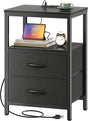 Nightstand with Charging Station, Side Table with Fabric Drawers, End Table with Open - Black / 2 Drawer is backordered and will ship as soon as it is back in stock.