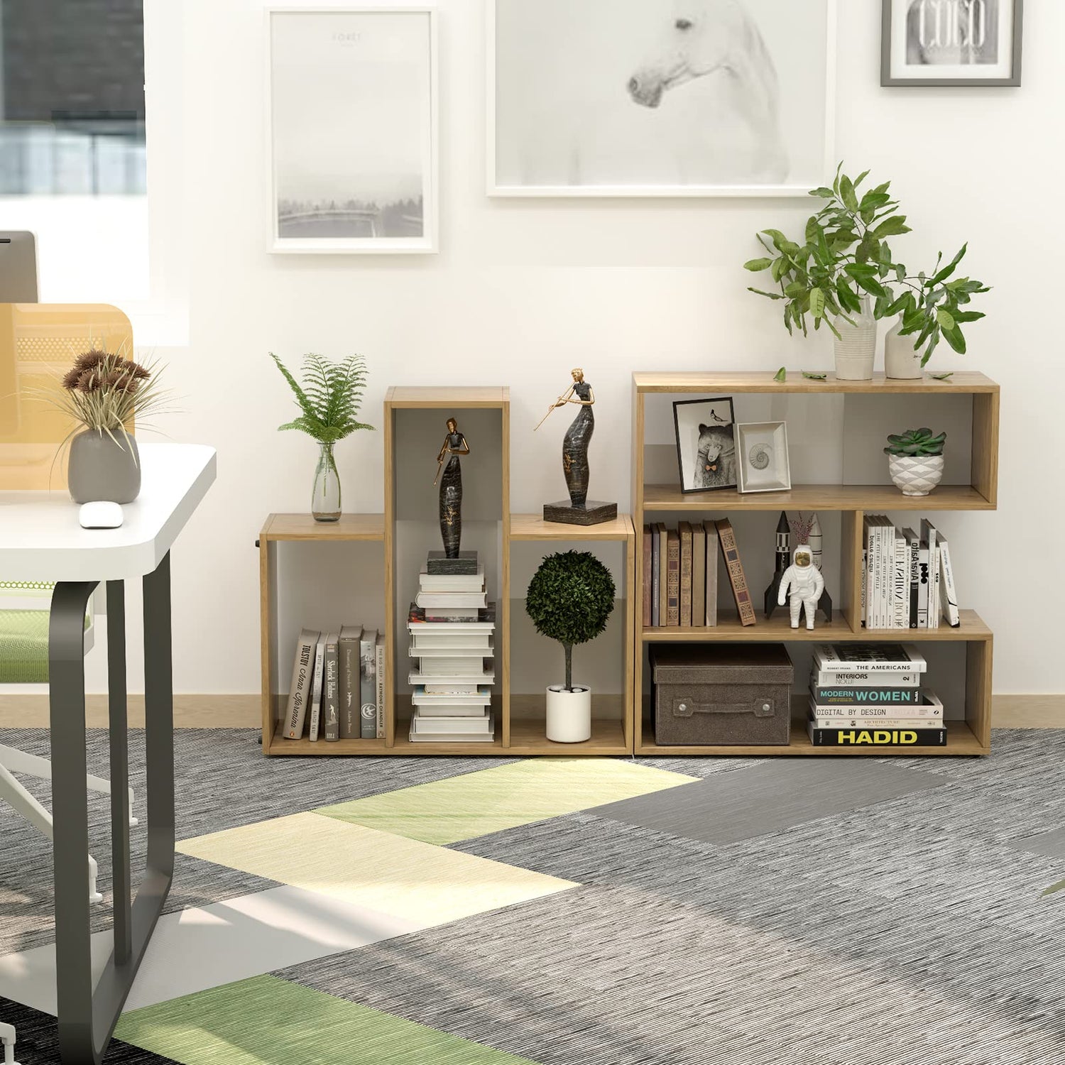 - Unlike normal bookshelves, this modern bookcase is combined by 2 parts. Despite putting in a row to get a wide bookshelf, you can also put them in 90 degrees to form a corner shelf or use them separately as 2 shelves in different places.