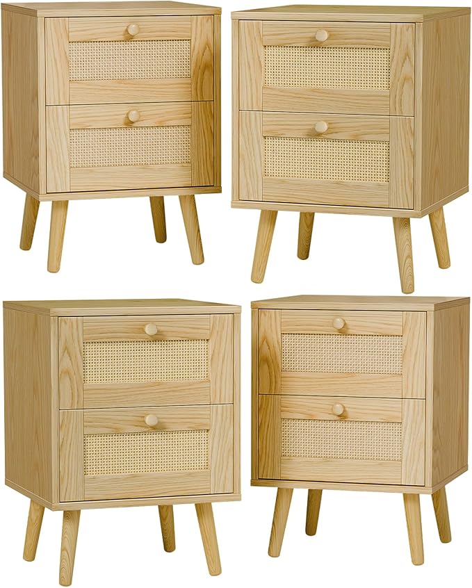 - Ample Storage Space: This rattan night stand with two spacious drawers and a wide desktop, our nightstands provide plenty of storage space for all your bedside essentials, Measuring 15.75 inches long x 15.55 inches wide x 21.65 inches high