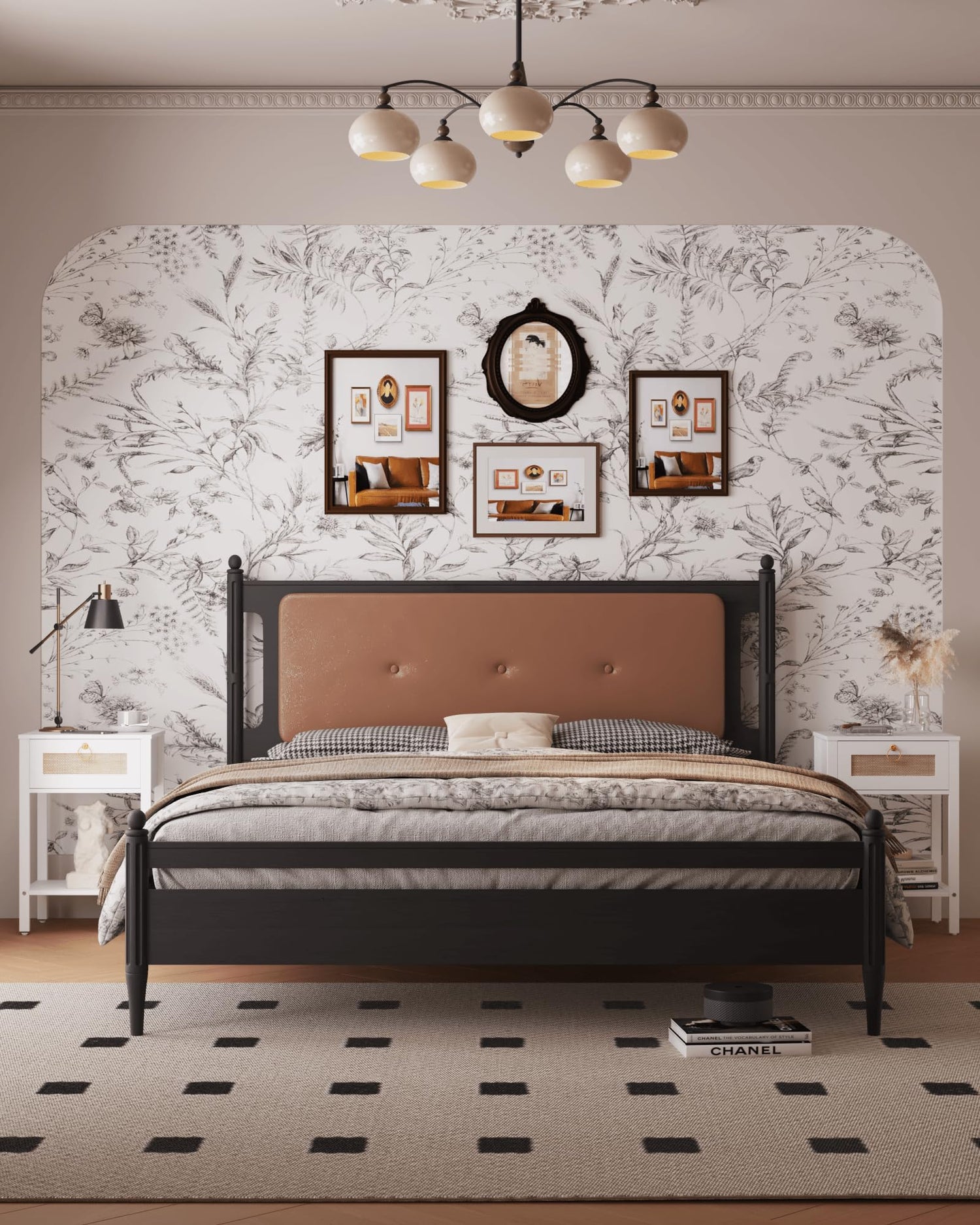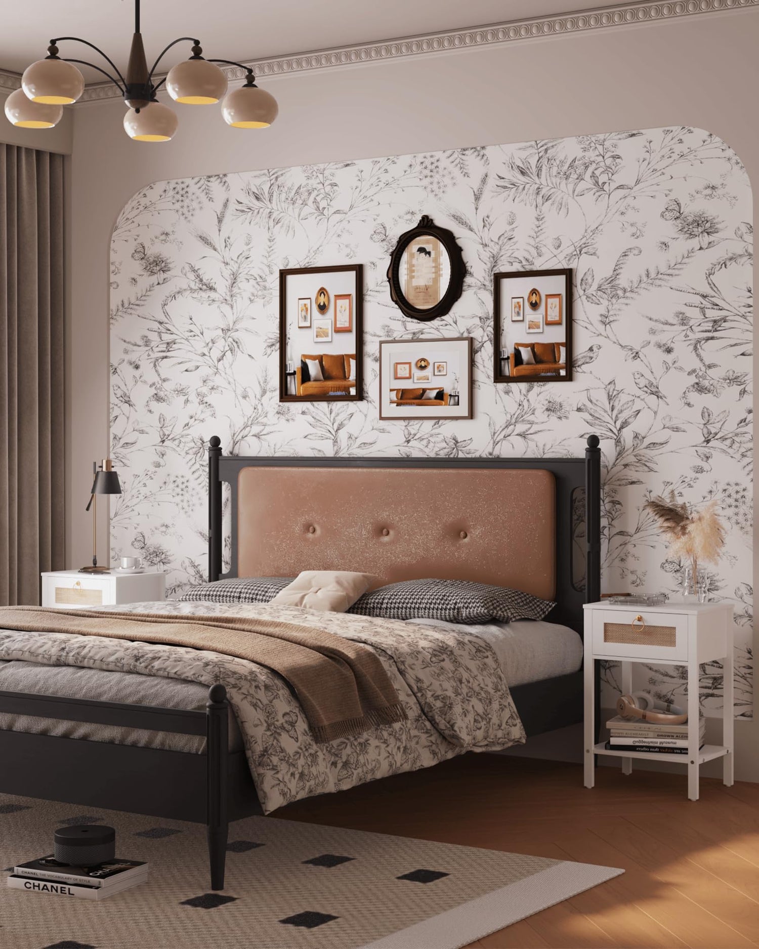 - This bedside table combines elements of farmhouse and boho, the chic rattan design, elegant lines and stylish edges, the combination of white and oak, is ubiquitous to highlight this side table the nobility and elegance are enough to make your home look stylish and beautiful.