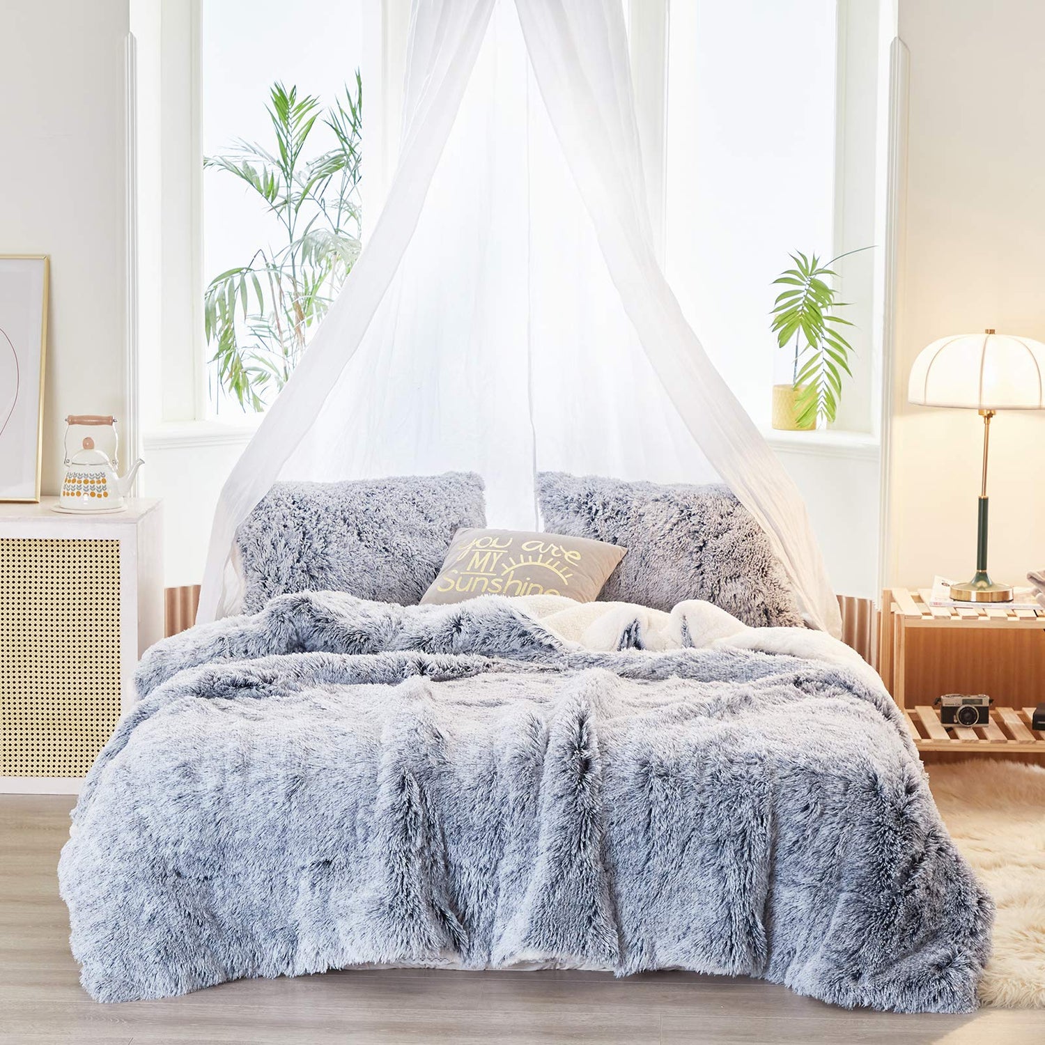 - Ultra Soft and breathable Material- A side: luxury plush shaggy faux fur fabric, B side: Ultra soft n cozy sherpa. This comforter set is very beautiful, romantic and luxury, it's a wonderful way to decorate your bedroom. Both sides fabric are soft and comfy, I believe it will help you stay warm and toasty at cold nights and sleep better than ever.