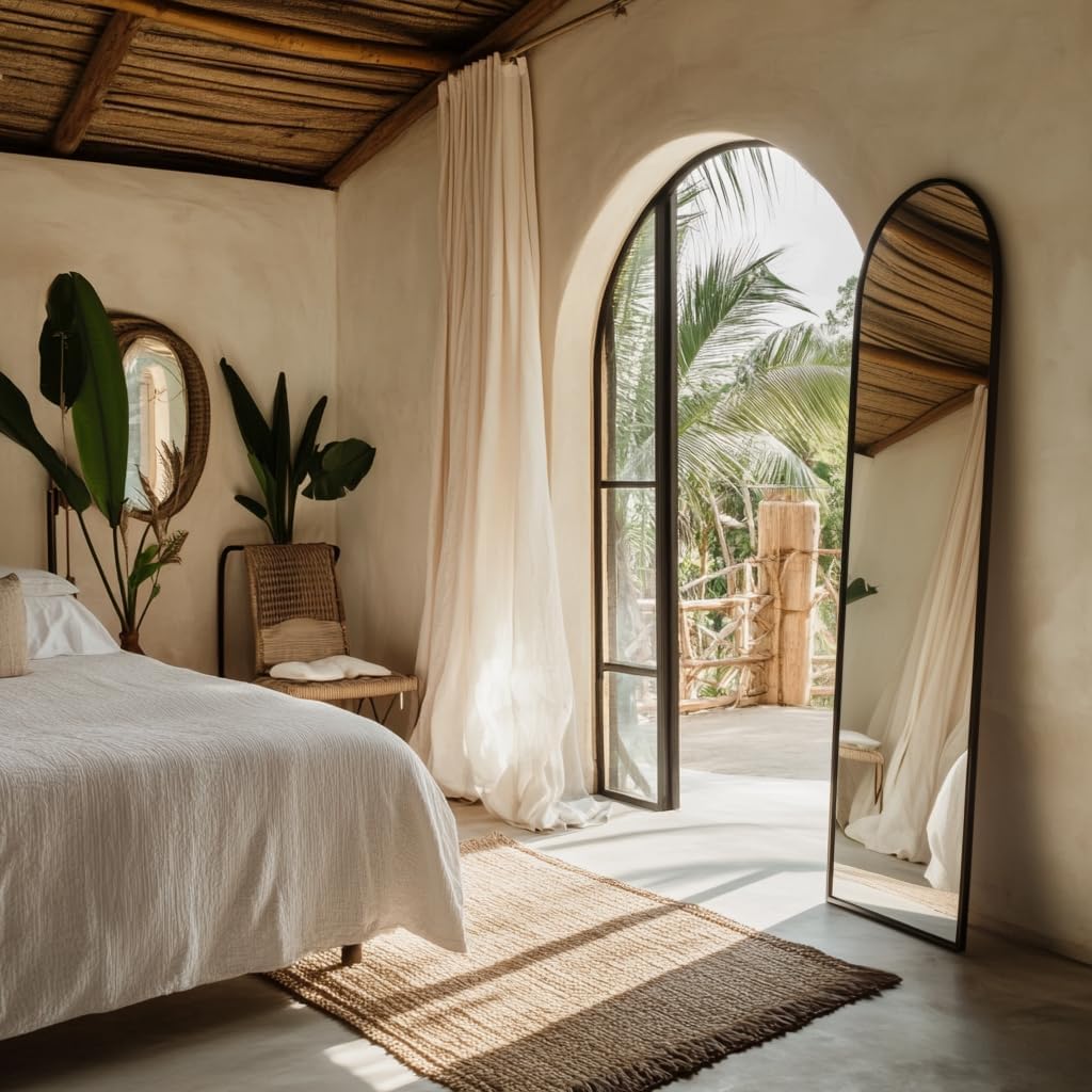 - Multiroom: Versatility meets sophistication with our Oversized Arched Mirror. Its design seamlessly integrates into various rooms, from bedrooms to living spaces. Whether you choose to lean it against the wall, hang it vertically or horizontally, this mirror effortlessly adapts to different settings, making it the perfect addition to any room in your home.