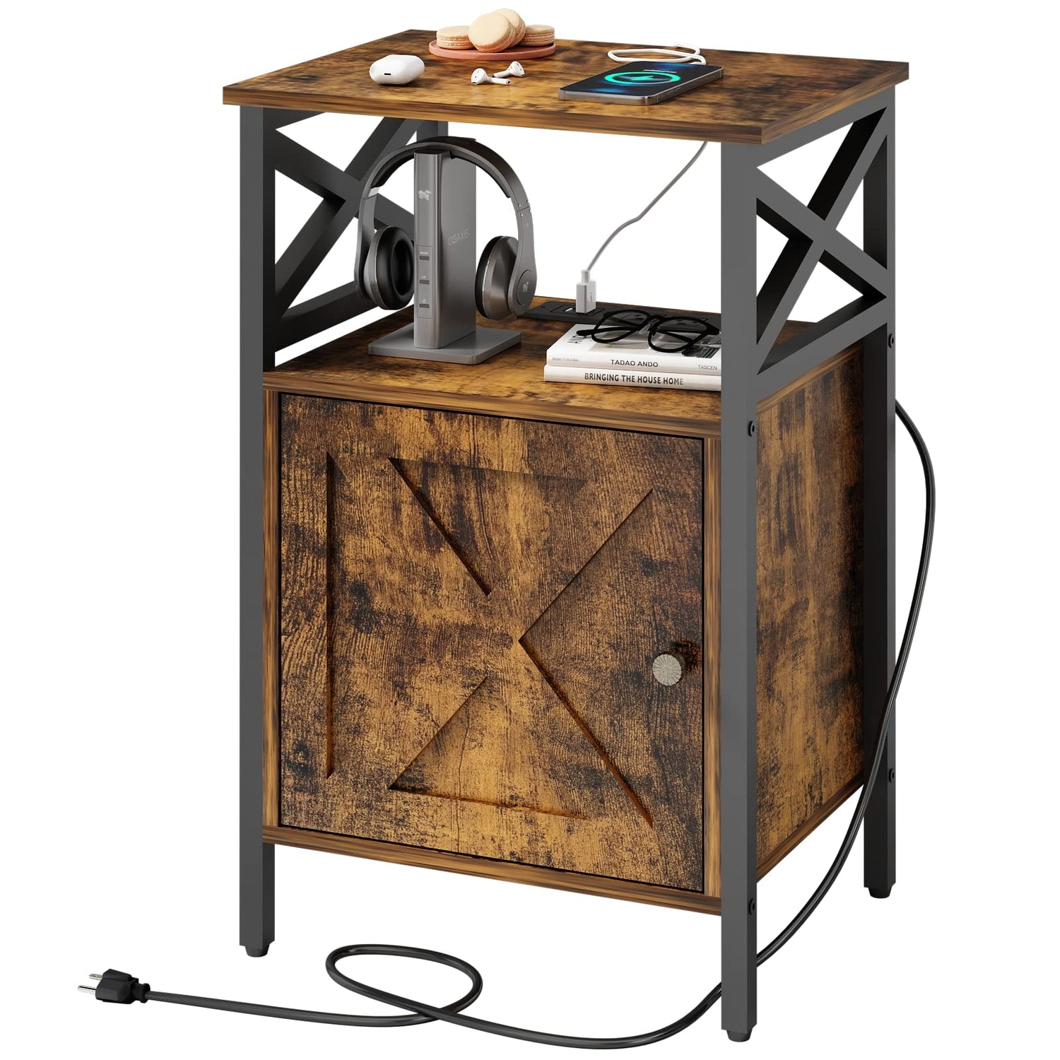 - Side Table with Charging Station: Never worry about not having enough power outlets again, our end table with 2 power outlets and 2 USB ports provide unparalleled convenience for you. The charging station is designed to be placed on the second open shelf, which is safer to use. There is no need to worry about the risk caused by milk, coffee and water overflow. long power supply cord allows you to place your nightstand in most places