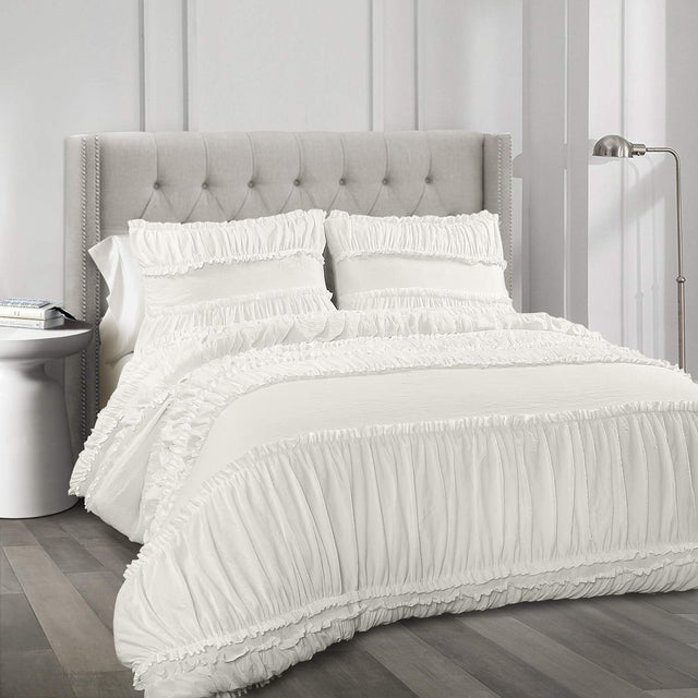 Lush Decor Nova Comforter | Ruffle Ruched Shabby Chic Farmhouse 3 Piece Bedding Set - Full Queen - White