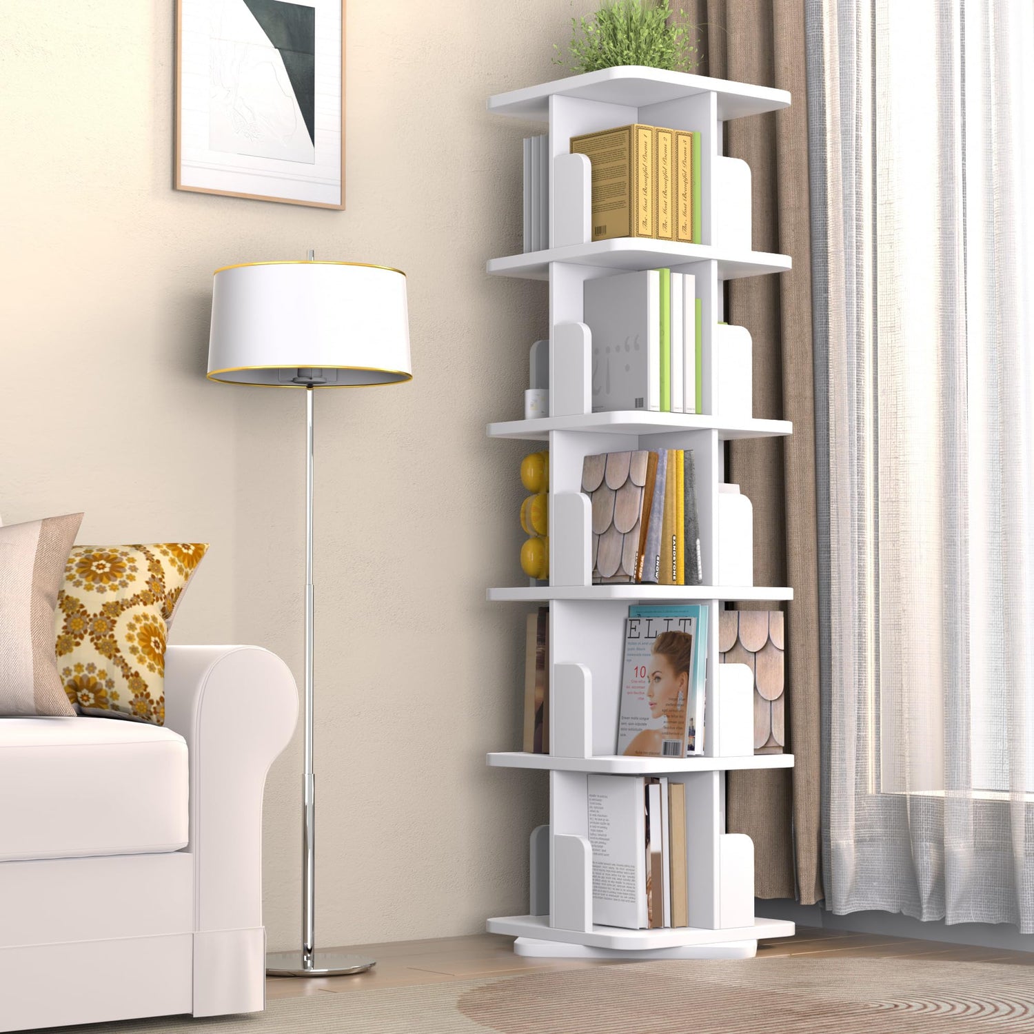 White Rotating Bookshelf, 360 Display 5 Tier Rotating Bookshelf Tower, Floor Standing