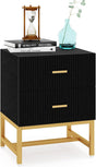 Modern Nightstand with 2 Big Striped Drawers, Tall Bed Side Table Wood Metal End Table - Black Gold is backordered and will ship as soon as it is back in stock.