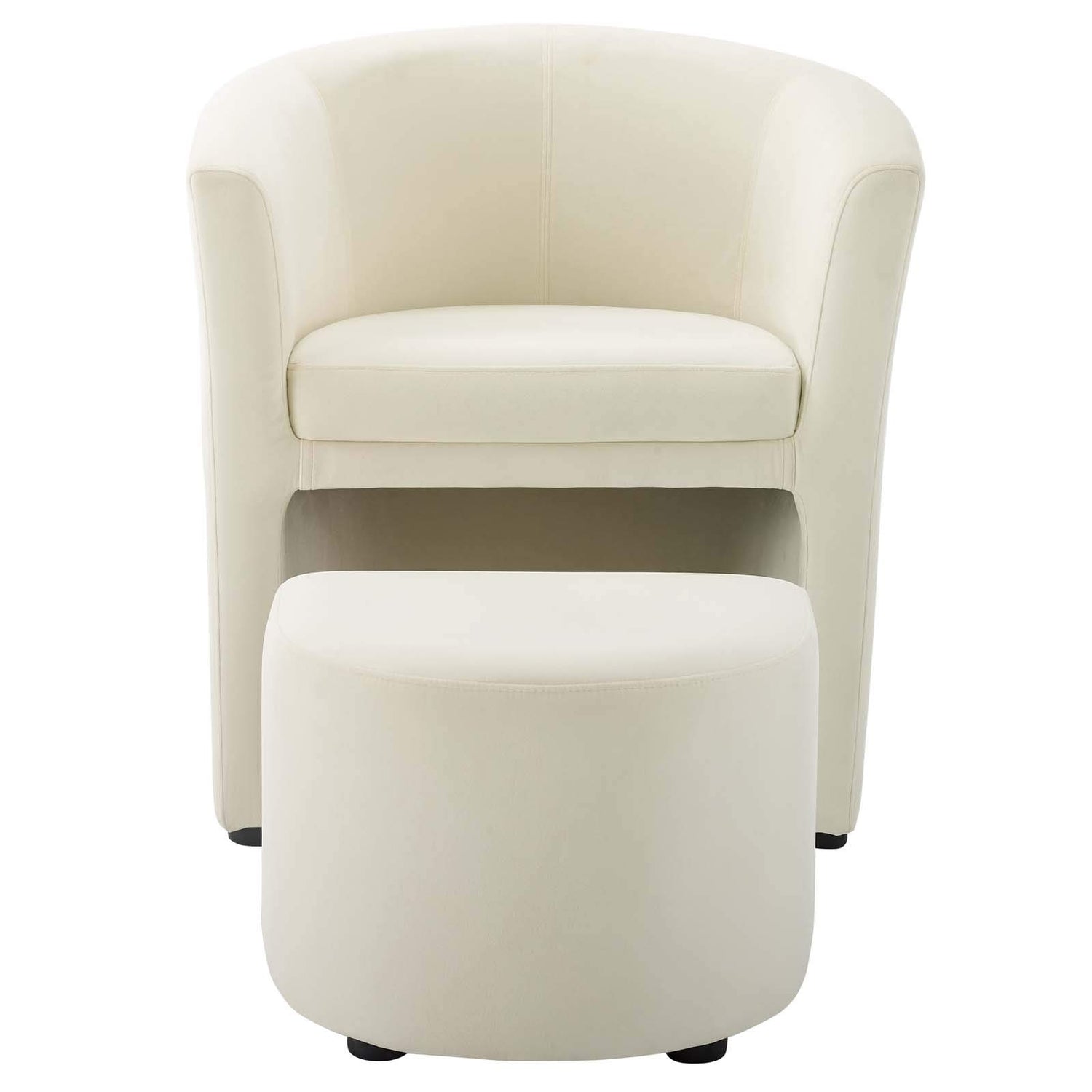 Divulge Performance Velvet Armchair and Ottoman Set in Ivory