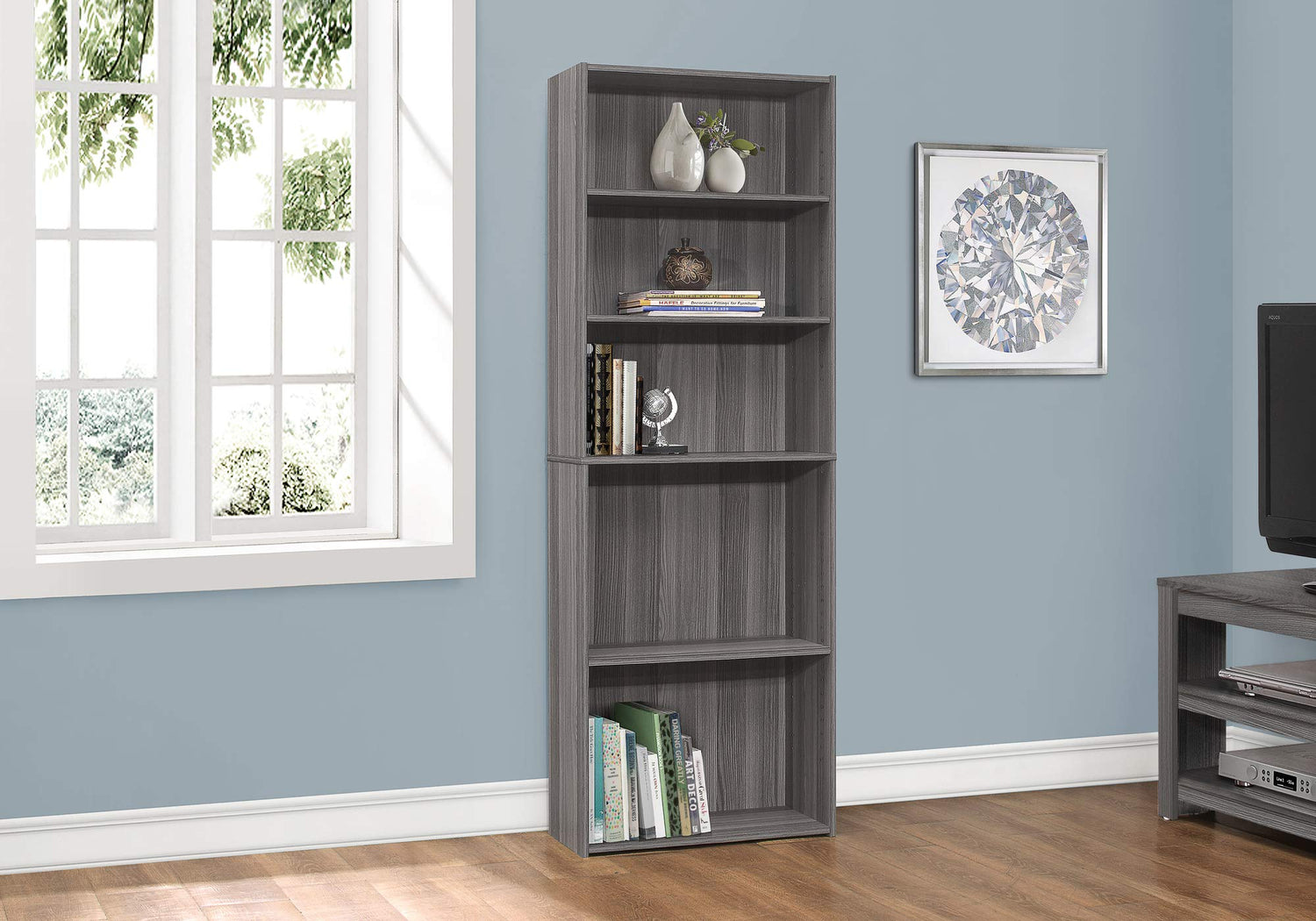 I BOOKCASE-72 H/Grey with 5 Shelves Bookcase, Gray - Contemporary is backordered and will ship as soon as it is back in stock.