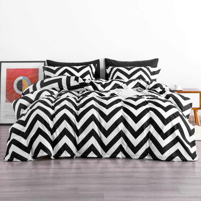 3 Pieces 100% Brushed Microfiber Striped Duvet Cover Set, Super Soft Black and