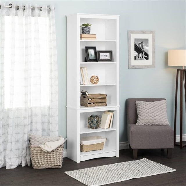 Sonoma Tall 6-Tier Bookcase 80"H with 2 Adjustable Shelves, White Storage Cabinet, Modern Display Cabinet, Bookshelf with Storage Shelves for Home Office, Living Room, Bedroom Organizer