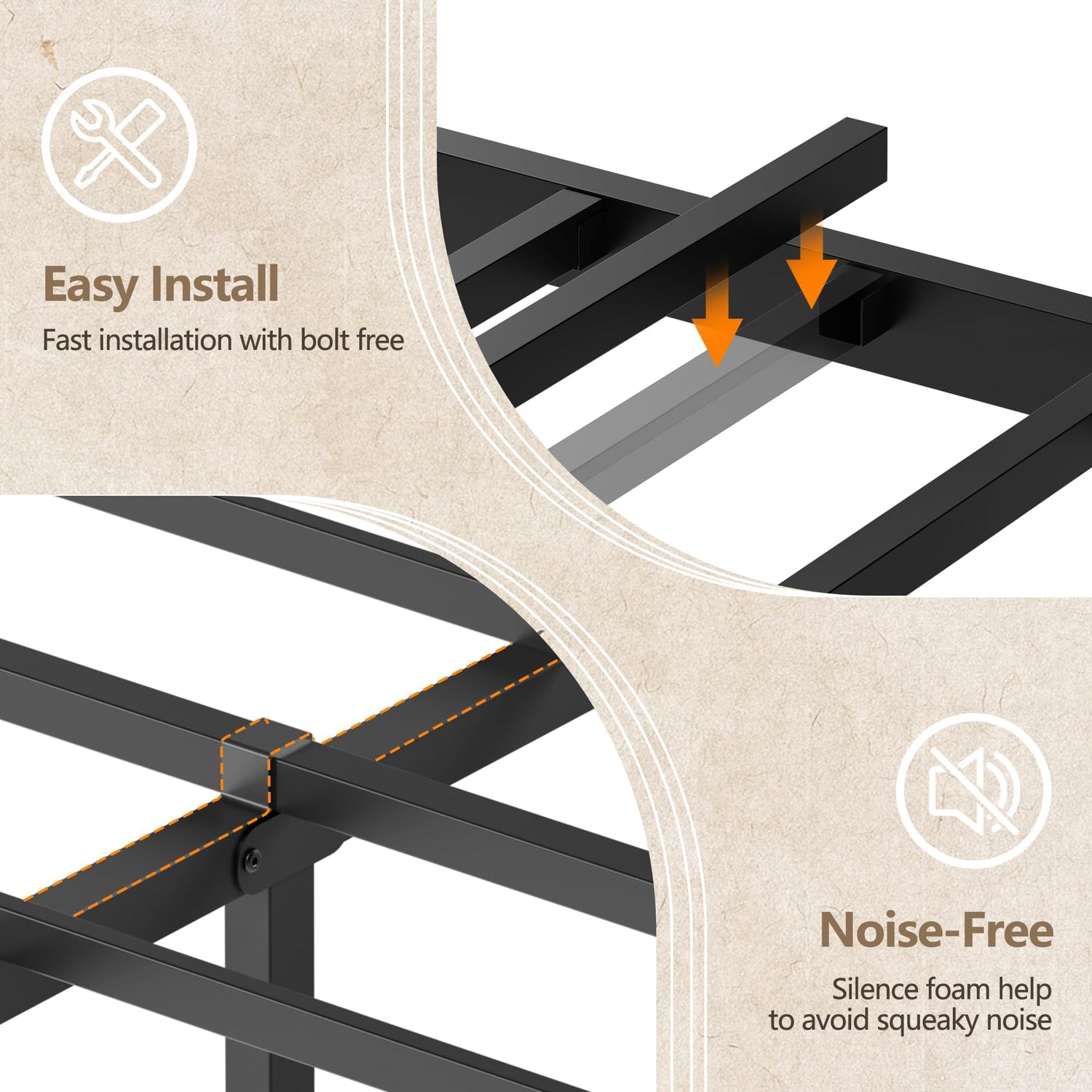 - Noise-Free and Sturdy: Heavy duty bed frame queen is made of high-quality metal slats, ensuring stability for 8-12 inch mattress. The mute bar between metal parts can effectively reduce noise and rattle, offering a comfortable and safe sleeping space