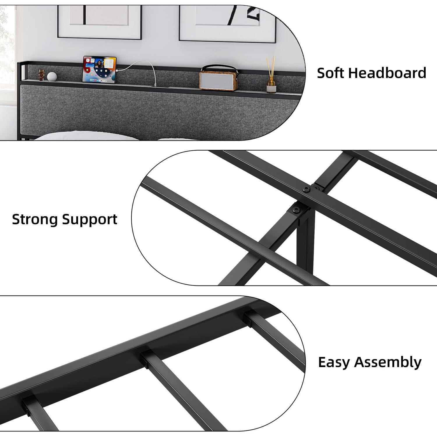 - Queen Bed Frame with Charging Station: Built -in 2 AC outlet & 2 USB ports, bed queen size can provide charge for 4 devices simultaneously. Say goodbye to the hassle of searching for available outlets or constantly getting out of bed to check on your devices