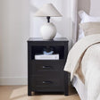 - Stay organized with 2 AC outlets, 2 USB ports, and a cord-organizing hole, making it ideal as a wireless charging nightstand. Keep your devices charged and your space clutter-free with this farmhouse end table with 2 storage drawers