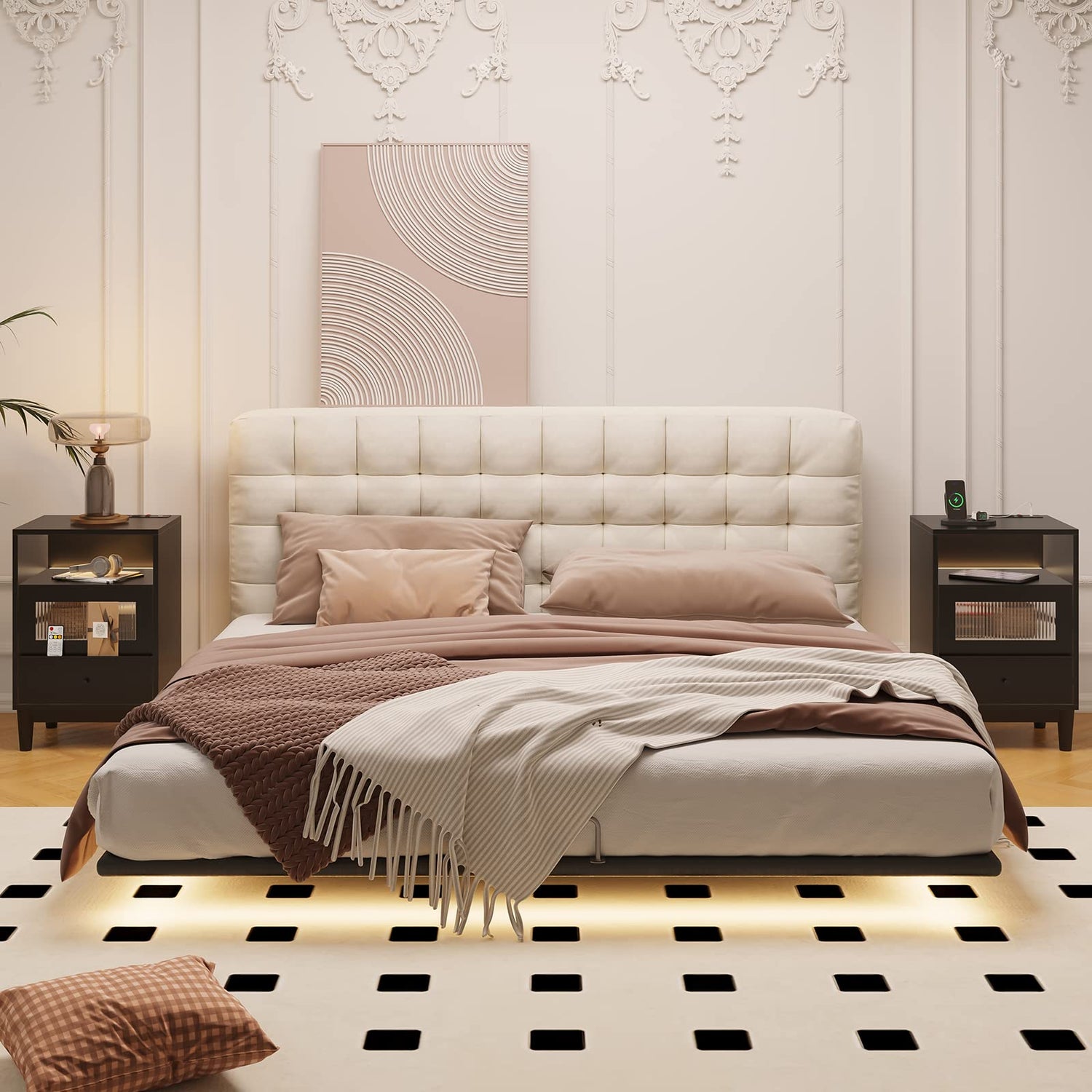 Black Nightstand with Charging Station, End Table with Glass Drawers, Night Stand with LED Lights, - Black is backordered and will ship as soon as it is back in stock.