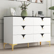 - Textured Stable and Sturdy: This white and black dresser is made of high quality MDF; And the surface of the dresser is made of twill pattern by advanced plastic absorbing process; Especially worth mentioning is that the bottom of the white dresser is supported by more solid metal legs with soft rubber pads, which not only provides better load bearing but also protects the floor