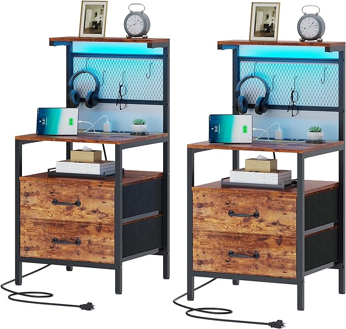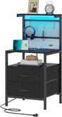 Nightstand with Charging Station and LED Lights, Night Stand