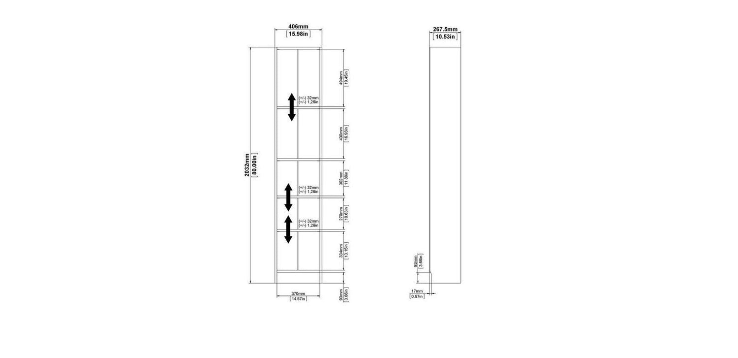 - Tall, narrow sleek design, Five shelves to display your books and knickknacks; Product is shipped in 1 box; Made from engineered wood; Made in Denmark; Scandinavian look and design; Dimension 10.50"L x 16.00"W x 80.00"H