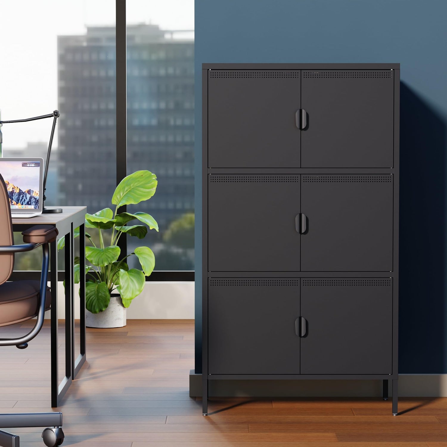 Metal Locker Storage Cabinet with 6 Doors and 4 Shelves,56.6" Tall Steel Office Storage