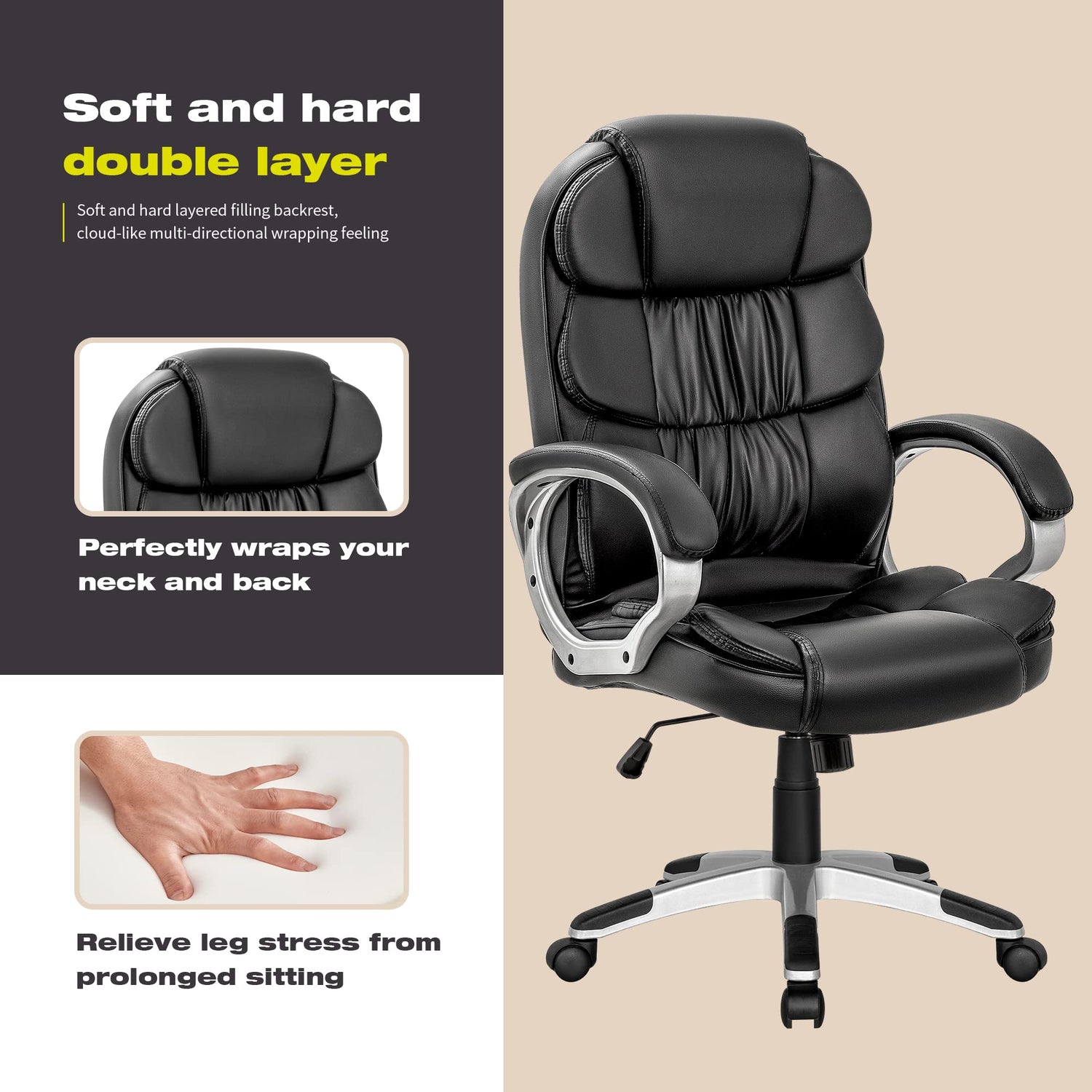 - 【Modern & Sleek Design】: Layering design increases the level of appearance, makes your office and home working environment modern and stylish. Lined with oil and water-resistant soft PU leather, our chair can extend using life.
