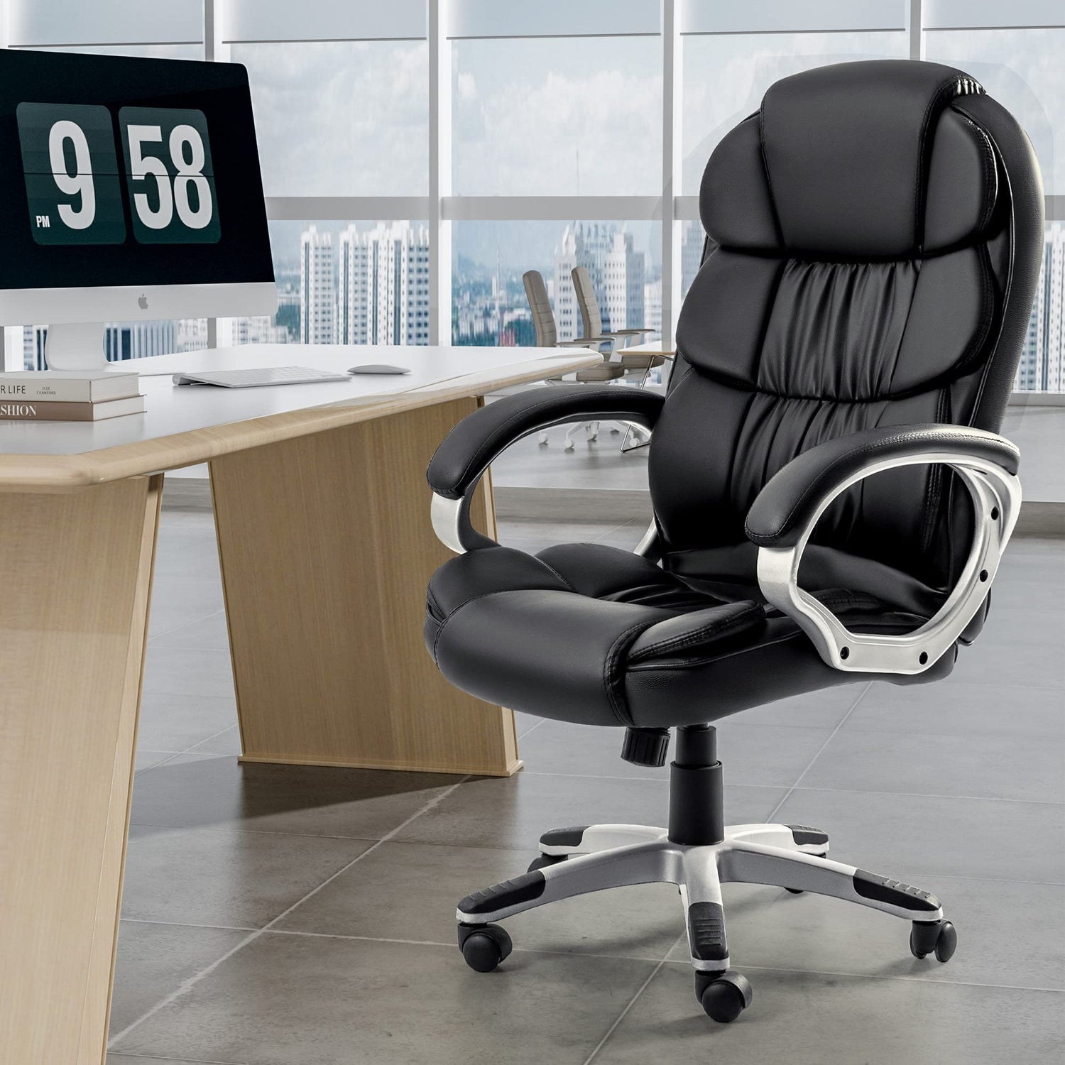VICTONE Big and Tall Office Chair Ergonomic Desk Chair High Back Executive Computer Chair Adjustable Swivel PU Leather Task Chair with Padded Armrests and Lumbar Support (Black) is backordered and will ship as soon as it is back in stock.