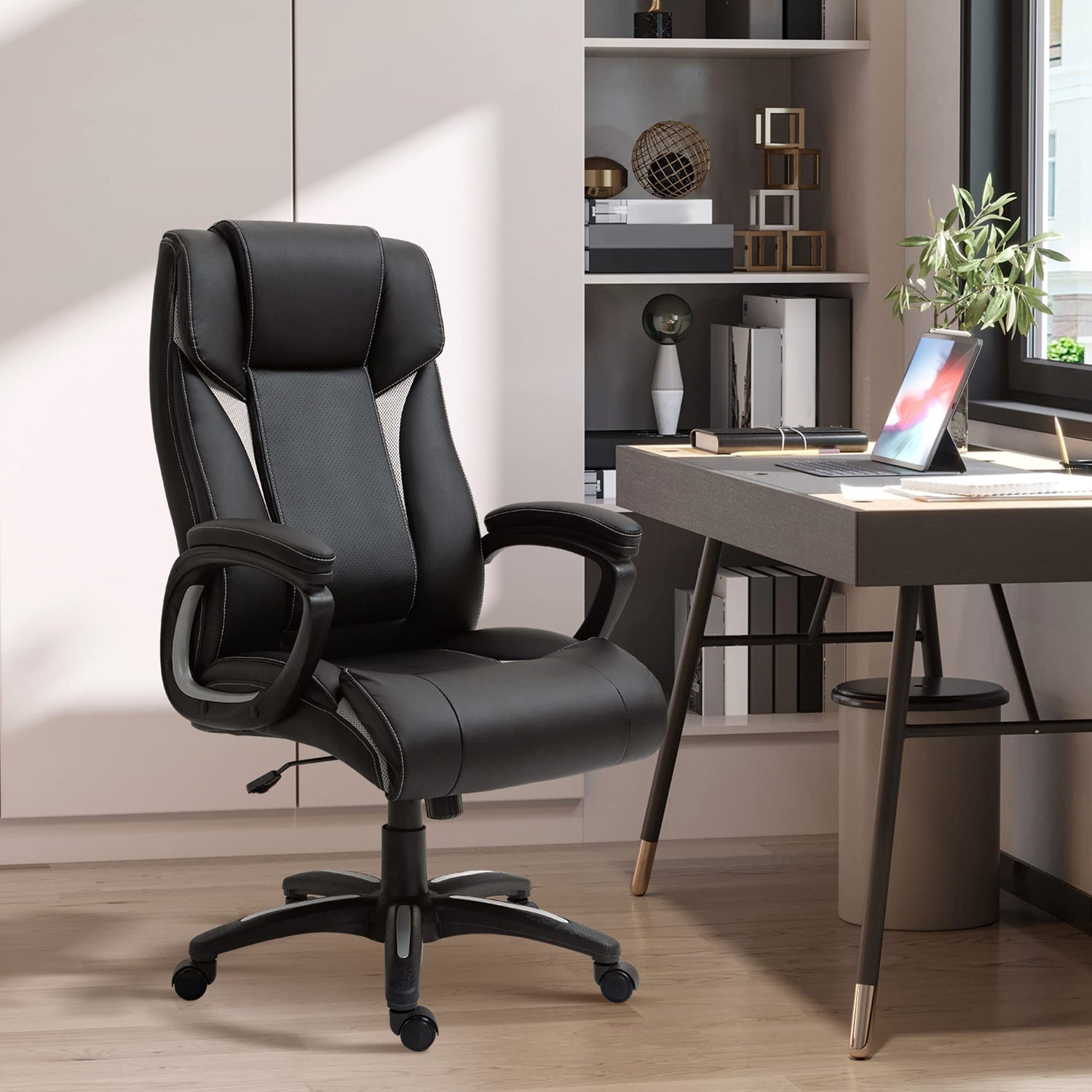 - Breathable Design: Breathable mesh fabric on the back of the high back office chair provides more ventilation and helps you cool off in the hot summer months. The black PU leather is a classic style and luxury though, which adds a certain ambiance to your home office.