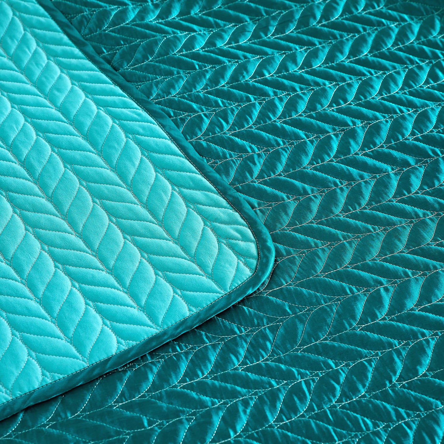 - Unique design: This ultra comfortable bedding set is double-side design. Top side of the coverlet is pure satin fabric quilted with leaf patterns, reflecting charming pearly lustre in the light. The other side is made of brushed fabric, which makes the bedspread more breathable and long lasting than cotton fabric. You could choose both side to cover as you like
