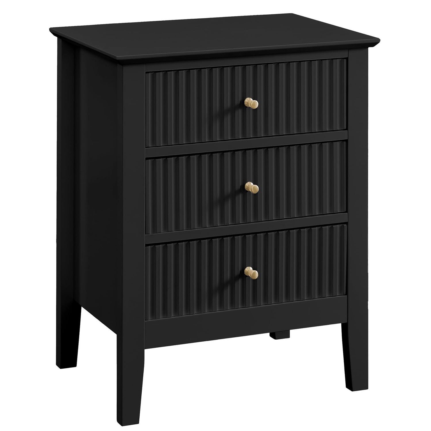 Fluted 3 Drawers Black Nightstand, Bedroom 24" Bed Night Stand, Side End Table Small - A-black is backordered and will ship as soon as it is back in stock.