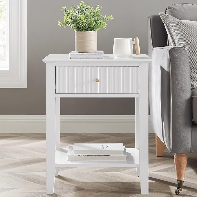 - The wooden 3 drawers end table is made of Carb P2 MDF board and eco UV painting, which is safety for decade use.