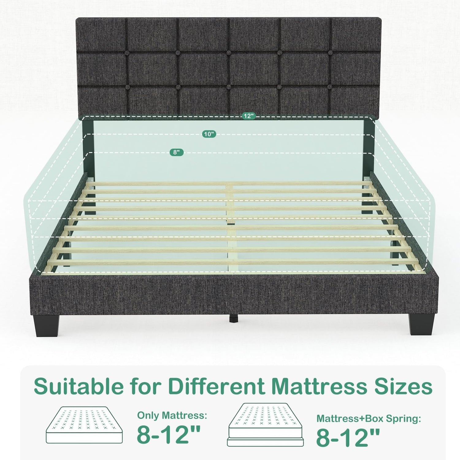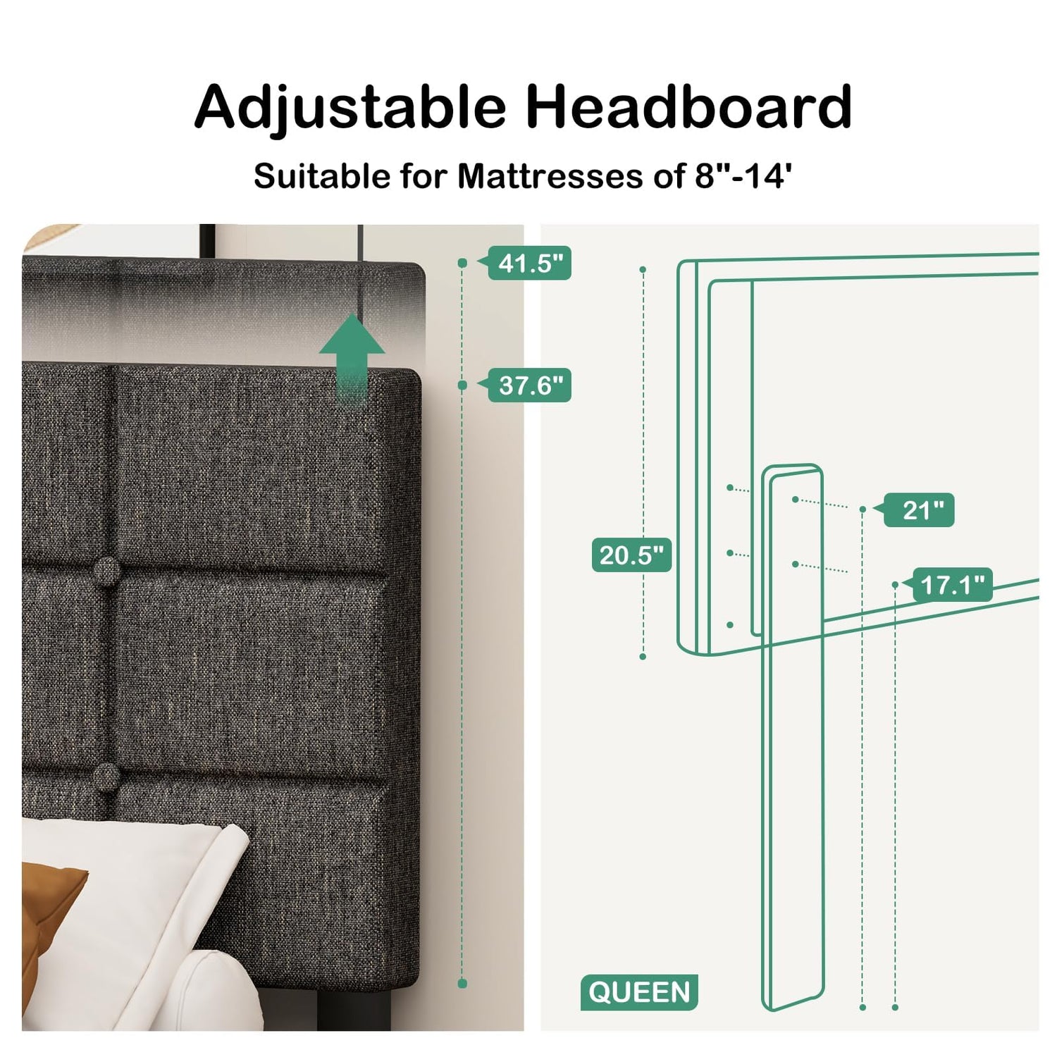 xiweot Queen Size Bed Frames with Headboard, Linen Upholstered Platform Bed Frame with Slats Support, Queen Bed Frame with Adjustable Headboard, Queen Bed Frame No Box Spring Needed(GreyCheckerboard)
