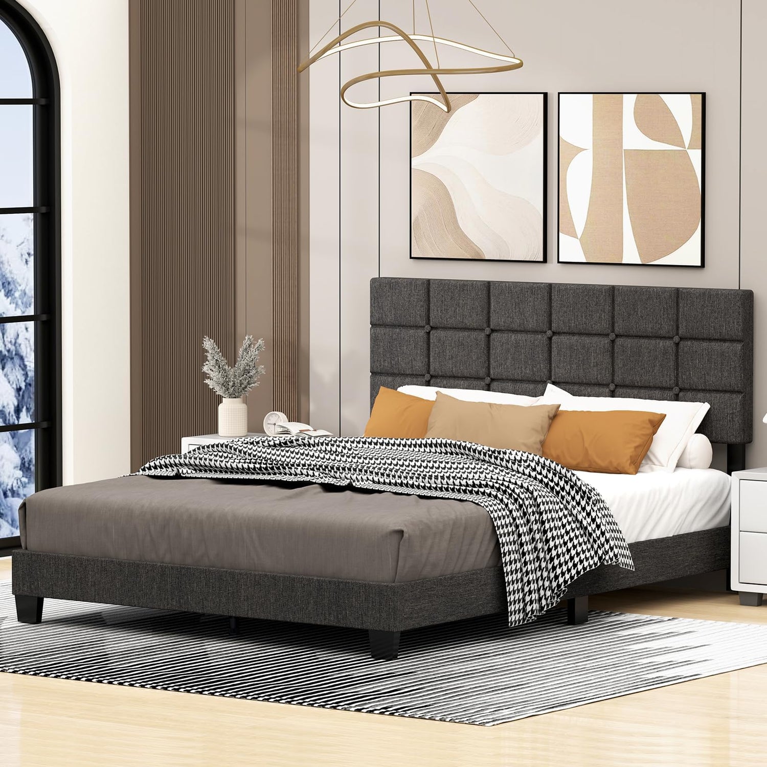 xiweot Queen Size Bed Frames with Headboard, Linen Upholstered Platform Bed Frame with Slats Support, Queen Bed Frame with Adjustable Headboard, Queen Bed Frame No Box Spring Needed(GreyCheckerboard) is backordered and will ship as soon as it is back in stock.