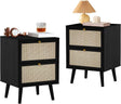 Rattan Nightstand Set of 2,Night Stand Bedside Table with 2 Drawers,Mid Century Modern
