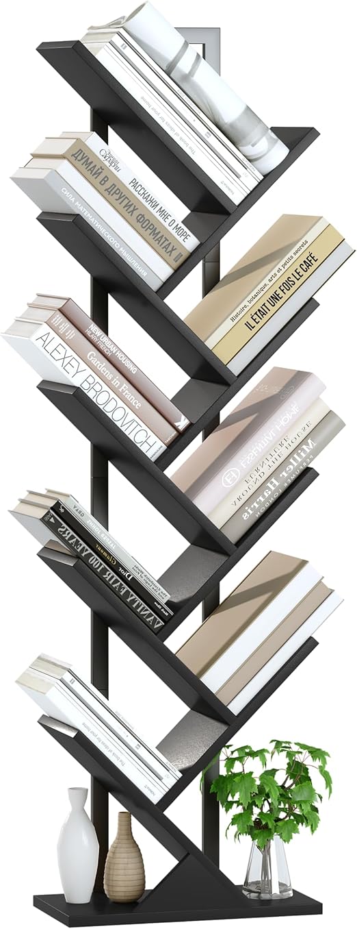 Tree Bookshelf, Geometric Bookcase with Steel Pipe for Living Room Bedroom - Black / New 9 Tier is backordered and will ship as soon as it is back in stock.