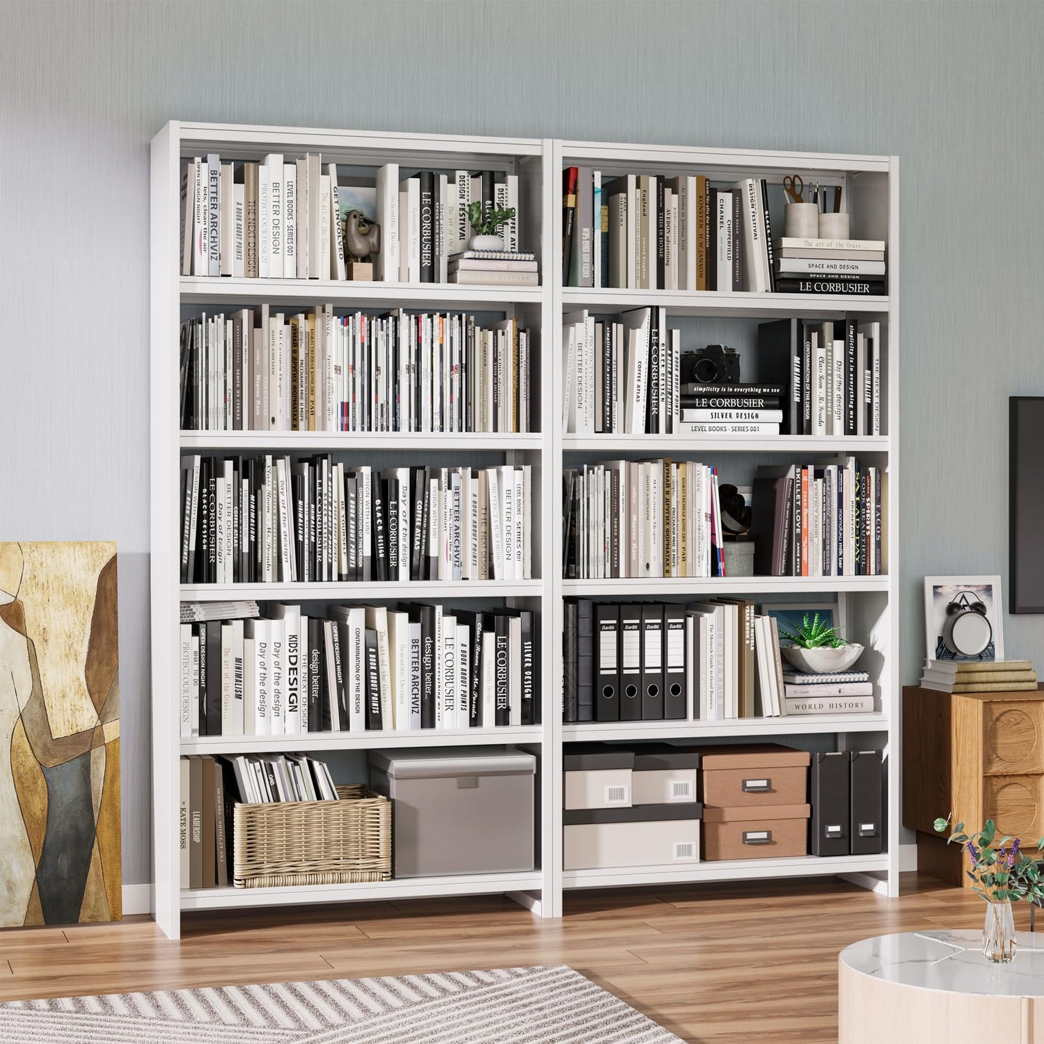 Bookshelf,5 Tier Bookshelves,69" Tall White Bookcase Shelf Storage Organizer