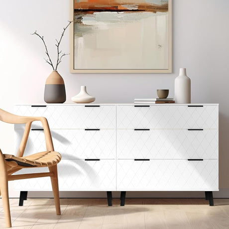 White 6 Drawer Dresser for Bedroom, Modern Chest of Drawer Storage Organizer