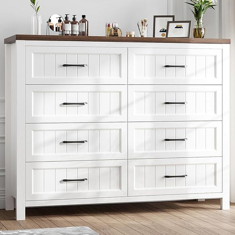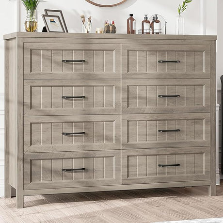 Farmhouse Dresser 8 Drawer Dresser for Bedroom, Large Wooden Dressers Double Grey
