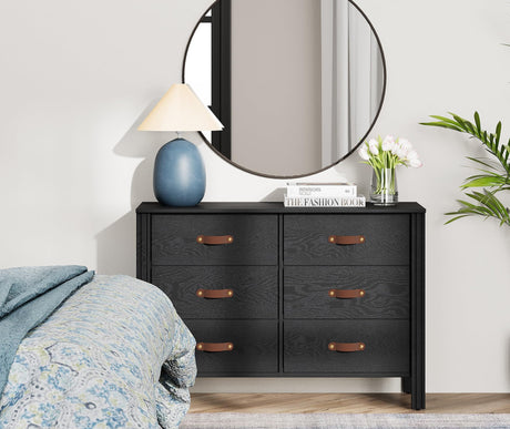 Black Dresser for Bedroom, Wood Dresser with 6 Drawers