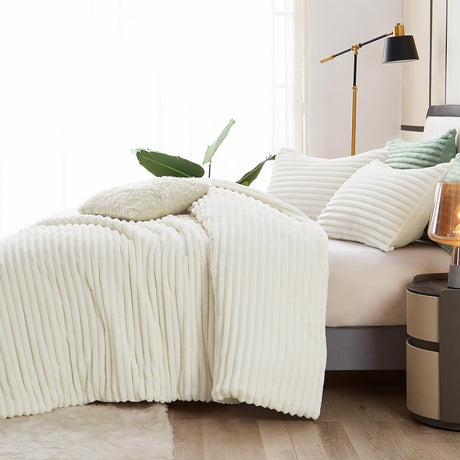 Queen Comforter Set - Super Soft Faux Fur Cream White Comforter Queen Size