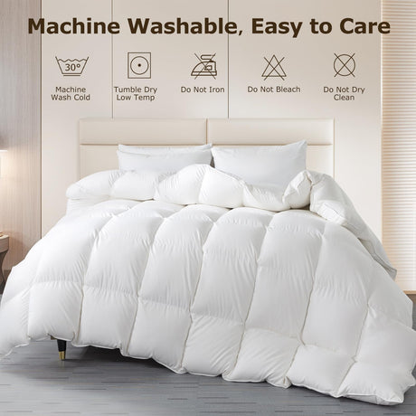 Luxurious Goose Down Comforter 丨White All Season Queen Size Duvet Insert