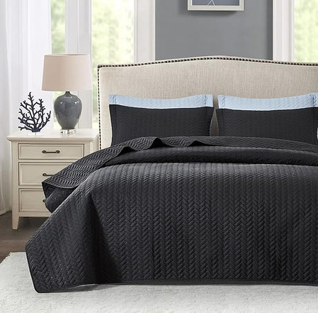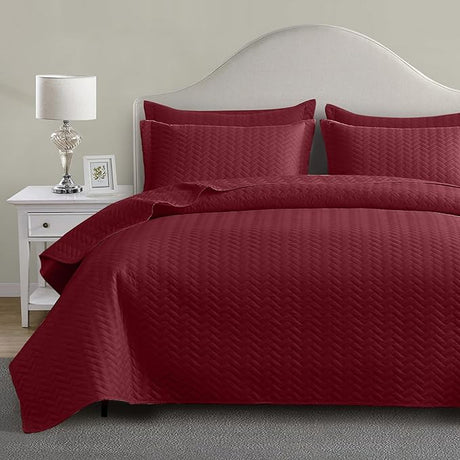White Quilt Set Queen Size, Lightweight Bedspread Ultrasonic Chevron Pattern