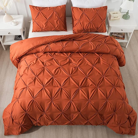 White Queen Comforter Set(90x90Inch), 3 Pieces Cute Pinch Pleat Bedding Comforters