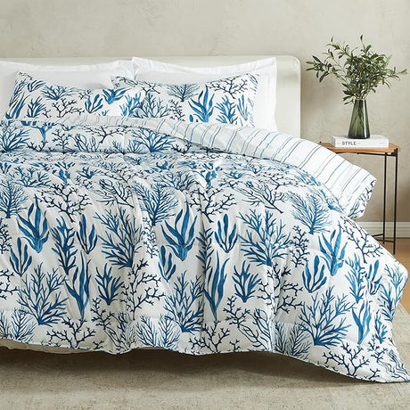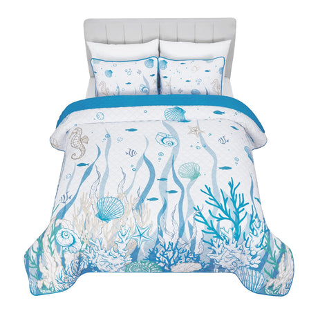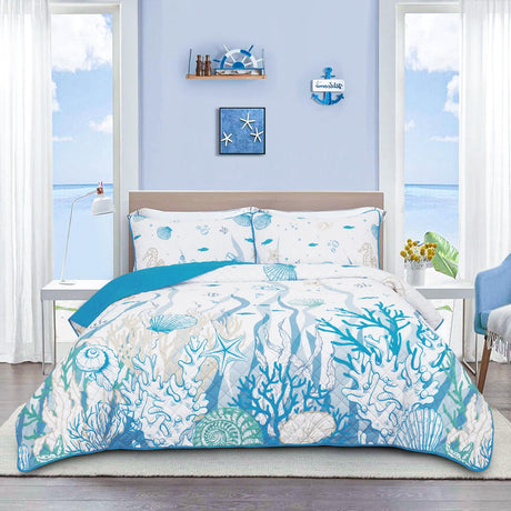 3 Piece Coastal Quilt Sets King Size - Reversible Microfiber Quilts with 2 Shams Soft