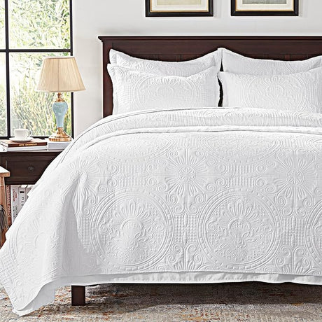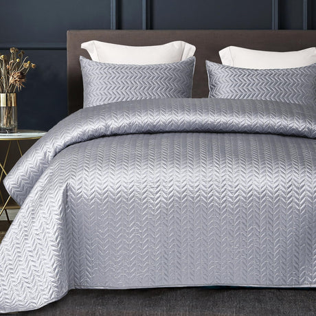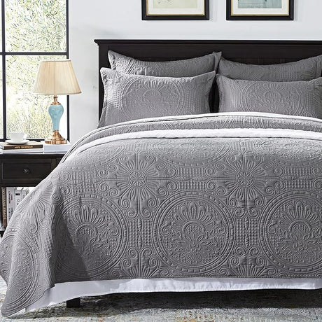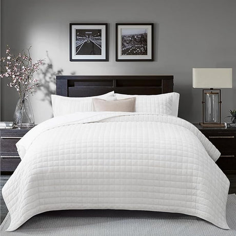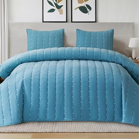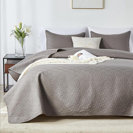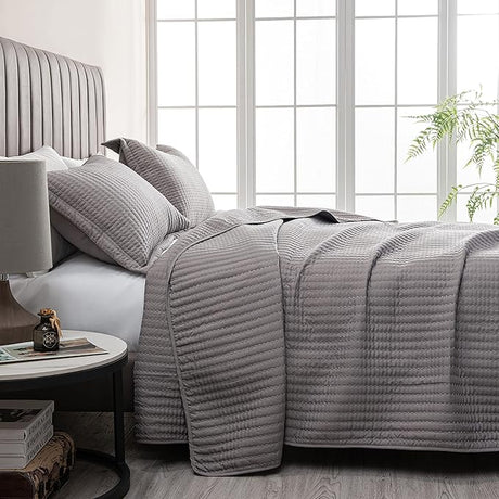King Quilt Bedding Set, 3-Piece Lightweight Summer Channel Stitch Quilt Set