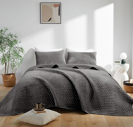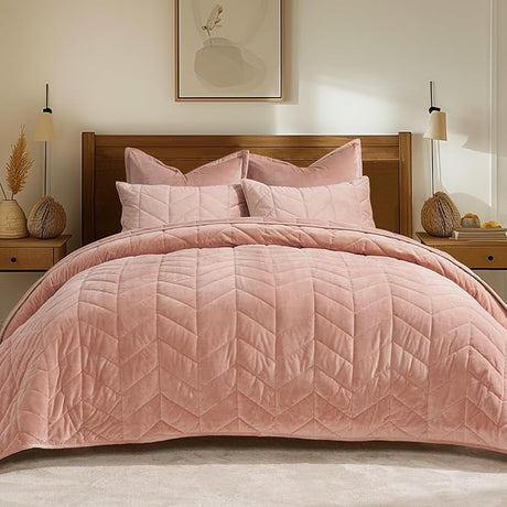 Luxury Velvet Quilt King Size, Ultra Soft Velvet Bedding Sets, Lightweight Quilted Velvet
