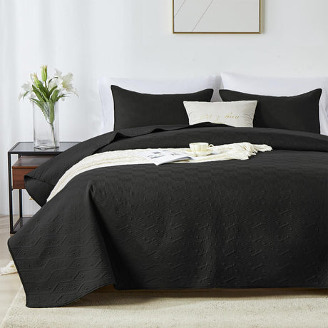 Full/Queen Quilt Set,Black Quilt Bedding Set with 2 Pillow Shams,Soft Lightweight Diamond Pattern