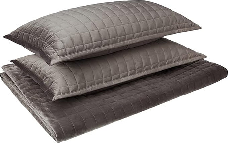 Velvet King Quilt Set, Three-Piece Box Stitch Bedding
