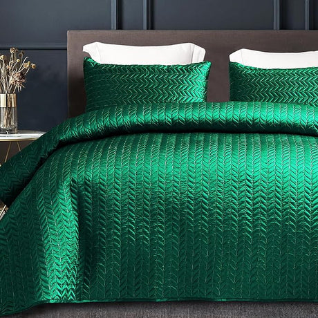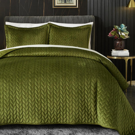 Quilt King Size Bedding Set-Olive Green Embossed, Bedspreads-Lightweight Summer Soft