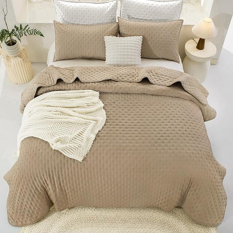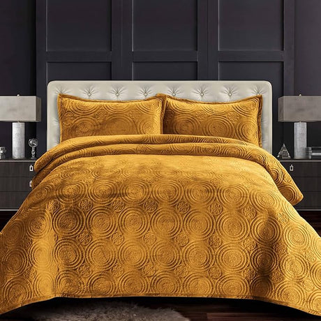 Luxury Ruched Velvet Quilt King Size, Ultra Soft Bedspread Coverlet Set