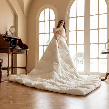 Luxury Oversized King Down Feather Fibers Comforter, Ultra-Soft Cotton Blend