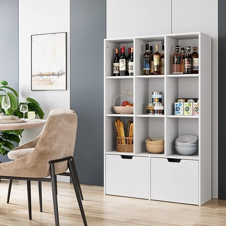 9 Cube Storage Organizer with Drawers, White Tall Bookshelf with Storage